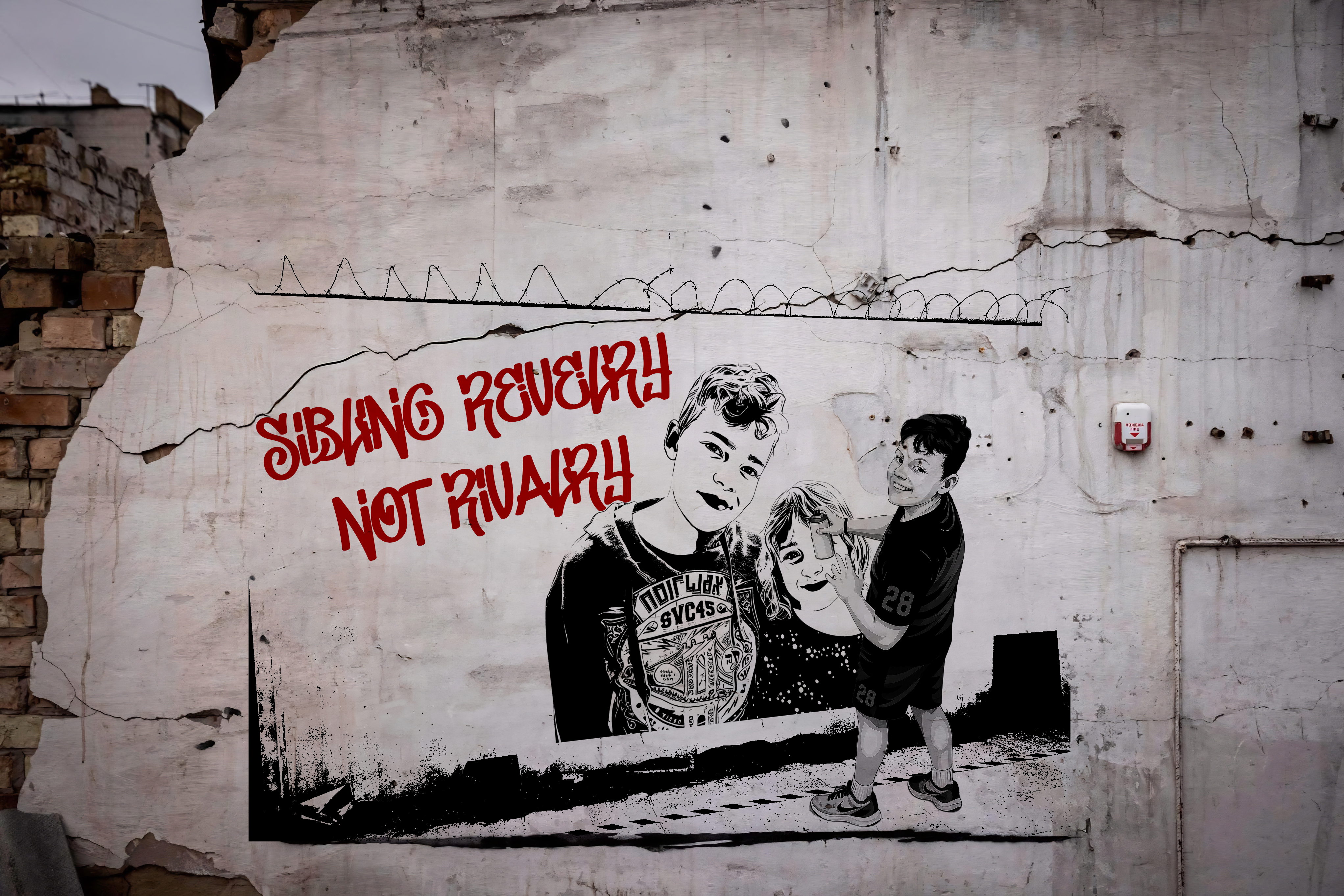 For my son’s birthday I would like a Banksy inspired artwork of him and his sister, maybe featuring some bombed out buildings.