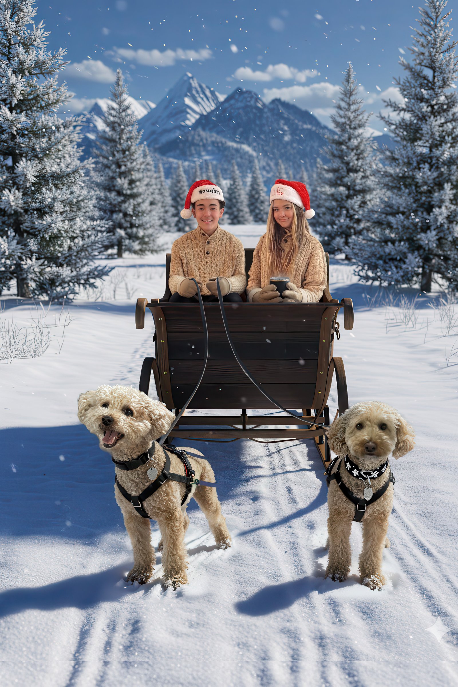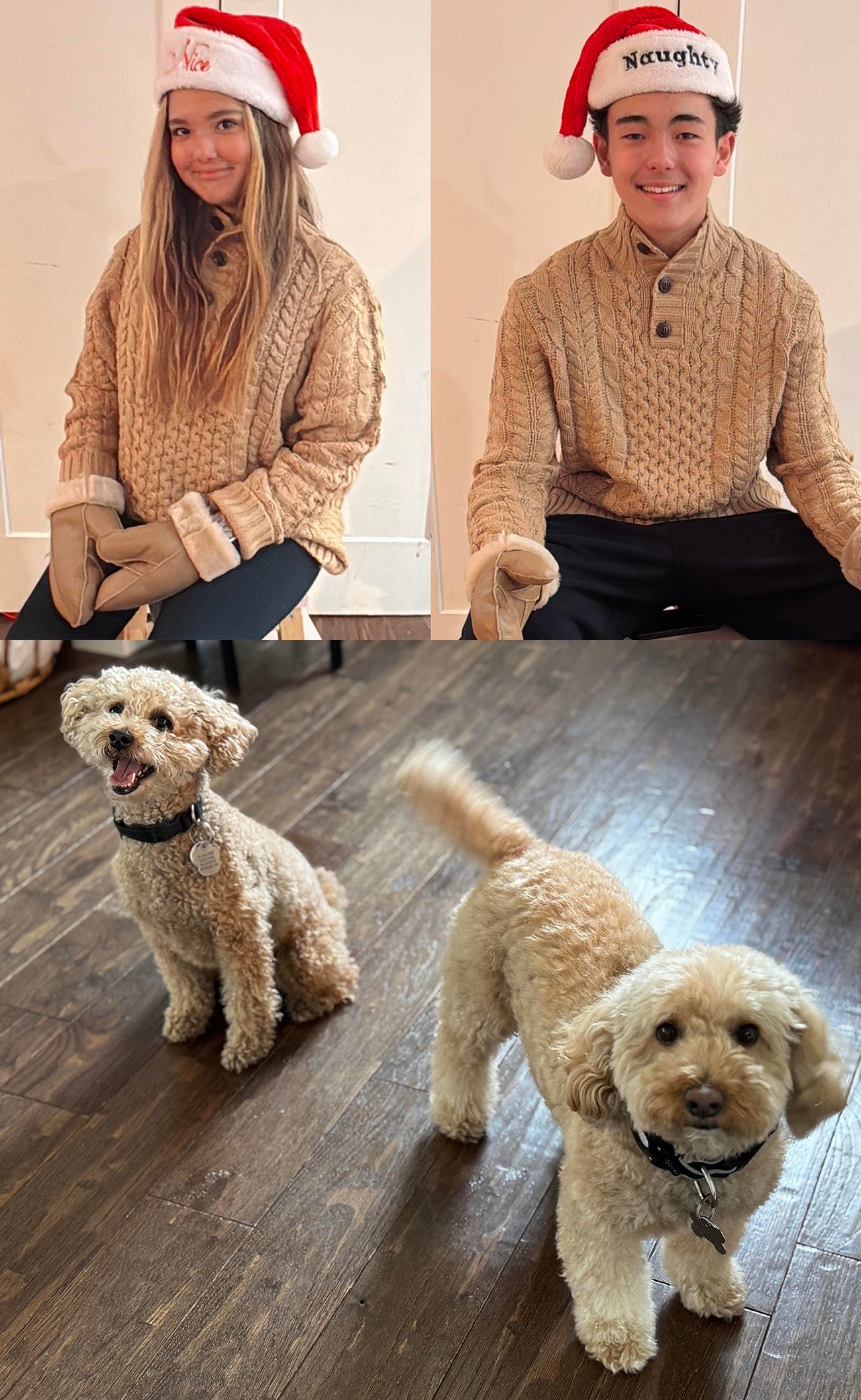 OP wanted a christmas card designed that included their two children and 2 dogs.