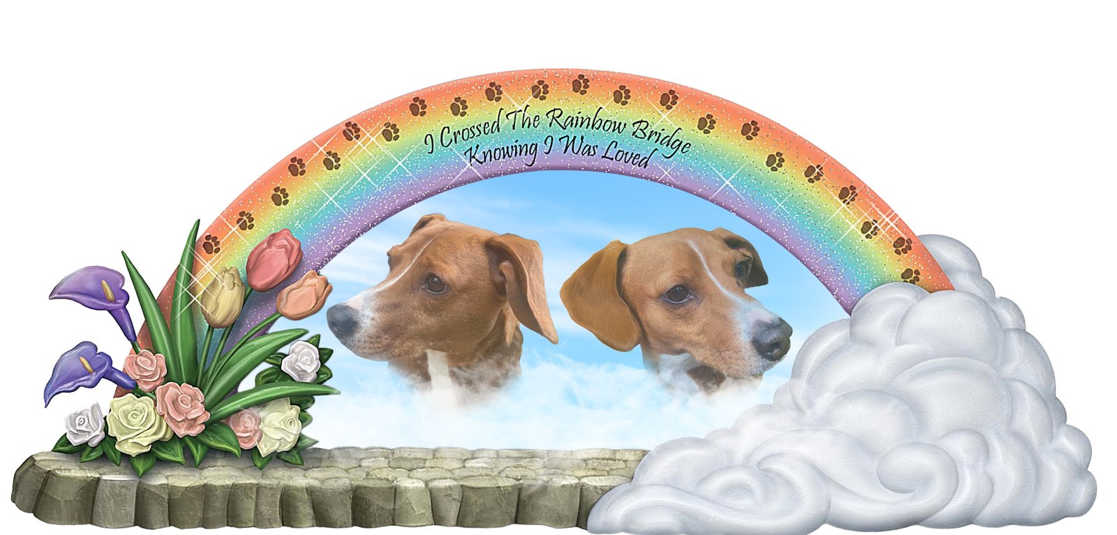 To me, it was clear that the image OP was wanting to use as a reference had been cropped, so I went hunting for the full file, and discovered it was actually a figurine that could be purchased for $80, and it did not even have a real photo of your dog! You just got to pick a generic dog, and only one of 4 available breeds at that!