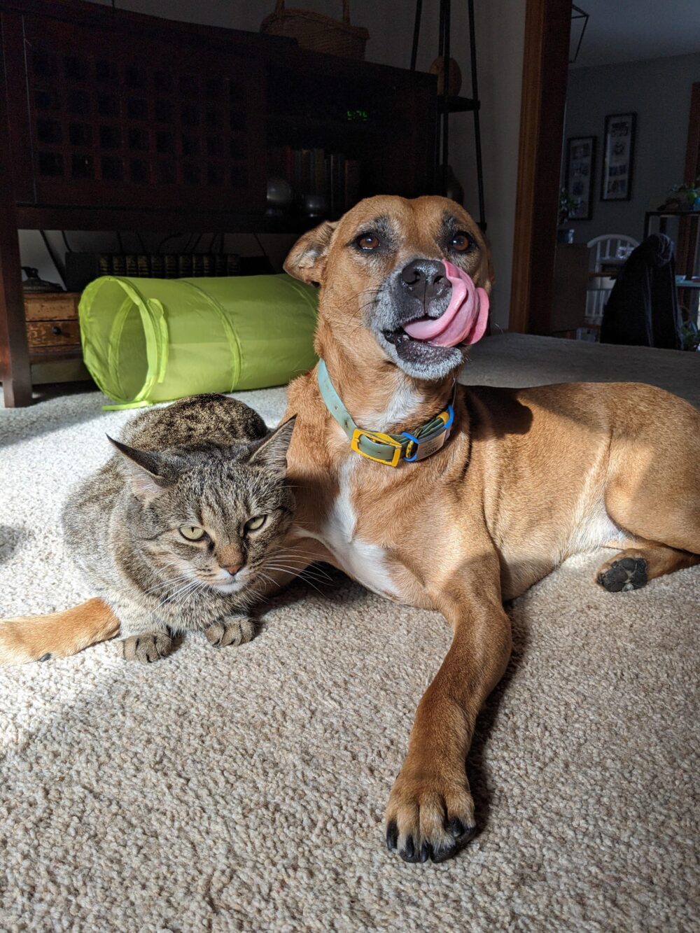 This was such a cute idea! And the pets looked suitably guilty, with the cat hunched and grumpy, and the dog licking his chops like he was remembering the taste of the doll, haha.