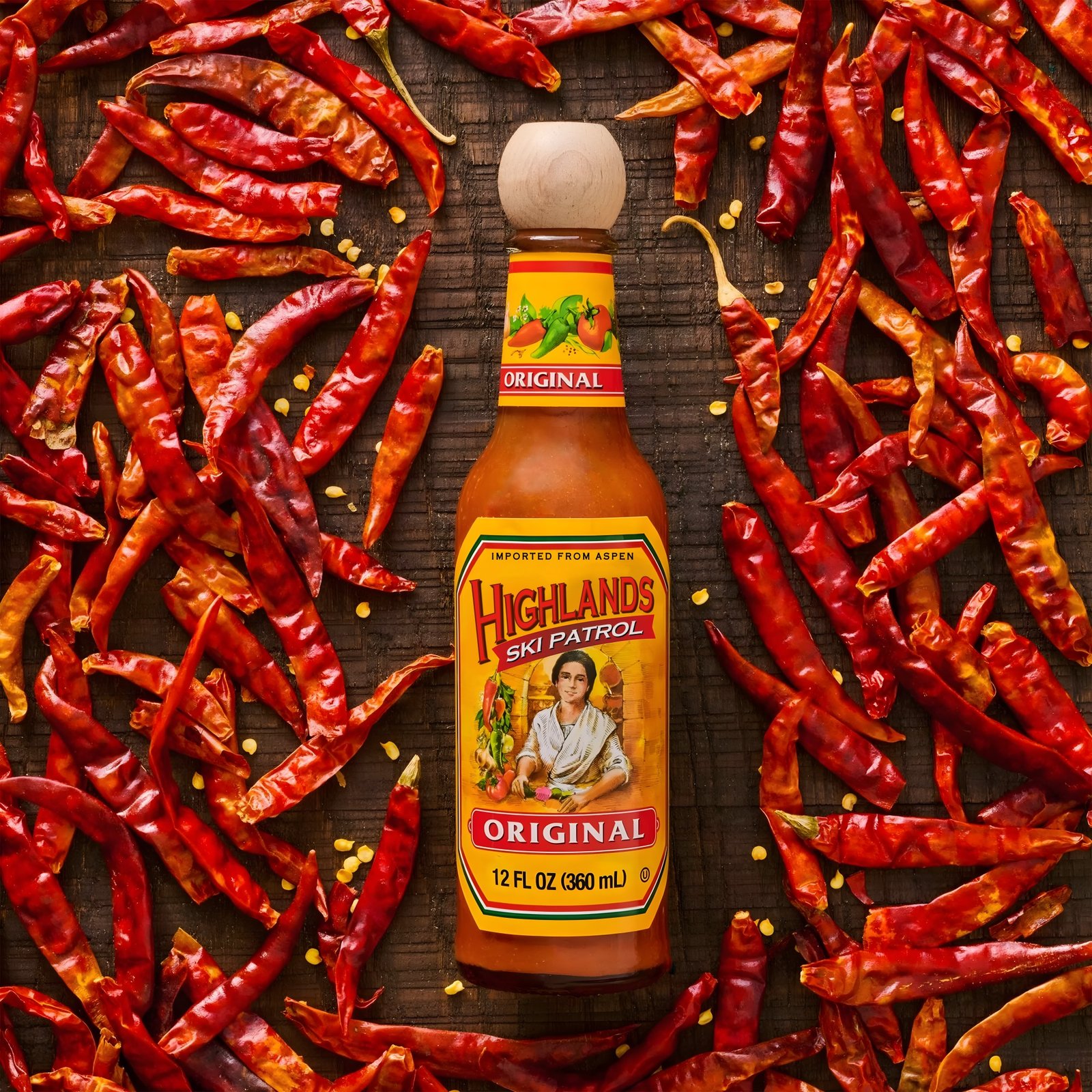 Hello, Trying to make a design for a sticker/end of season gift. Want to dub this cholula bottle. Looking to change: CHOLULA to HIGHLANDS HOT SAUCE to SKI PATROL IMPORTED FROM MEXICO to IMPORTED FROM ASPEN