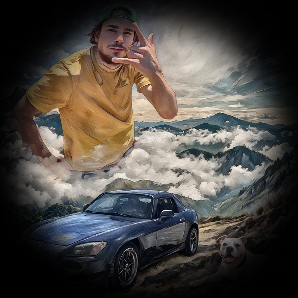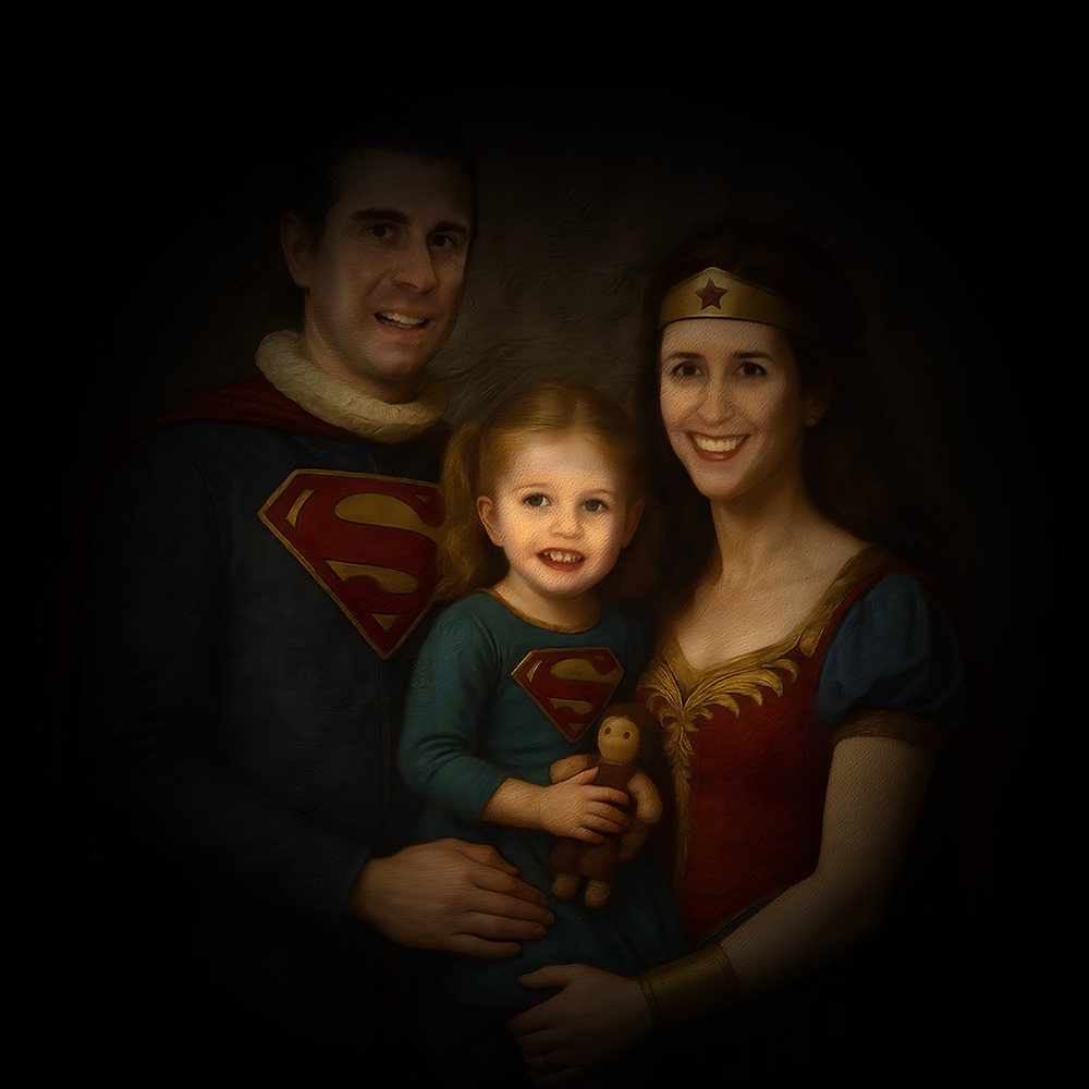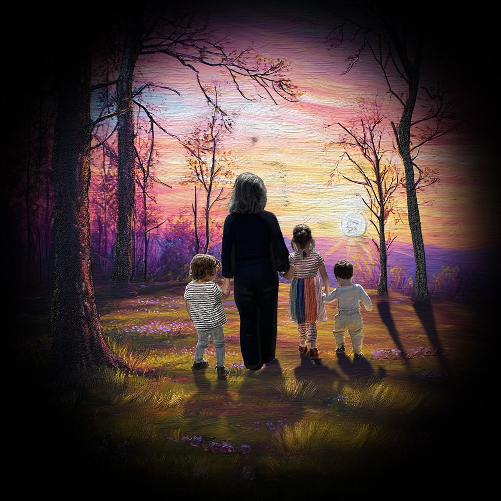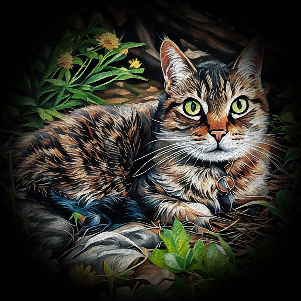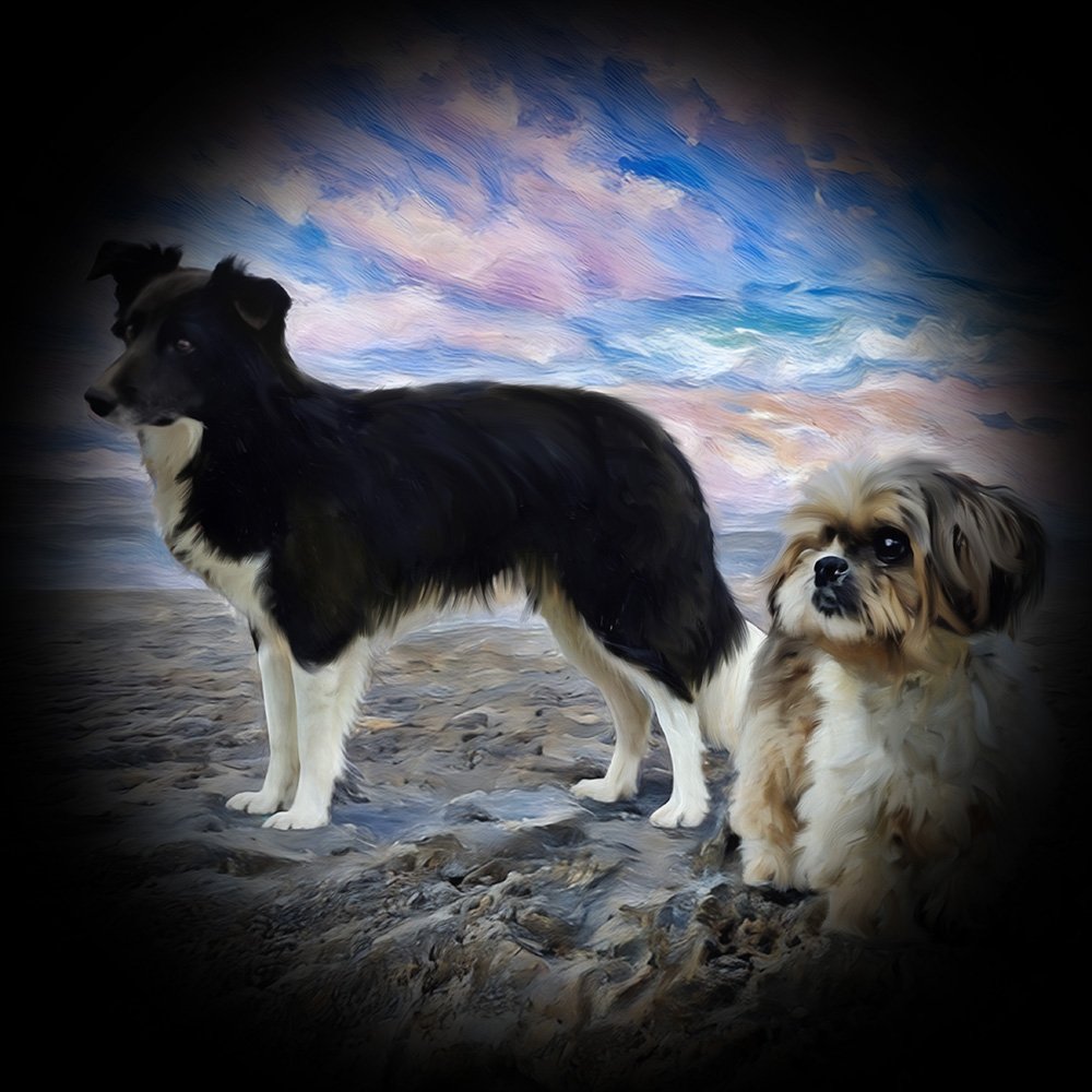 The last and most important step is taking the image into a program called Corel Painter, which has brushes that do an unbelievable job of mimicking real-life paint texture, with visible brush strokes and the illusion of depth and build up of the paint media. There are literally thousands of different brushes, and I have only used a fraction of them! I use these brushes to hand-paint the edited photo in my own (developing) style. This last step gives an added touch of realism to the digitally “painted” effect that you just don’t get with an AI generated painting.