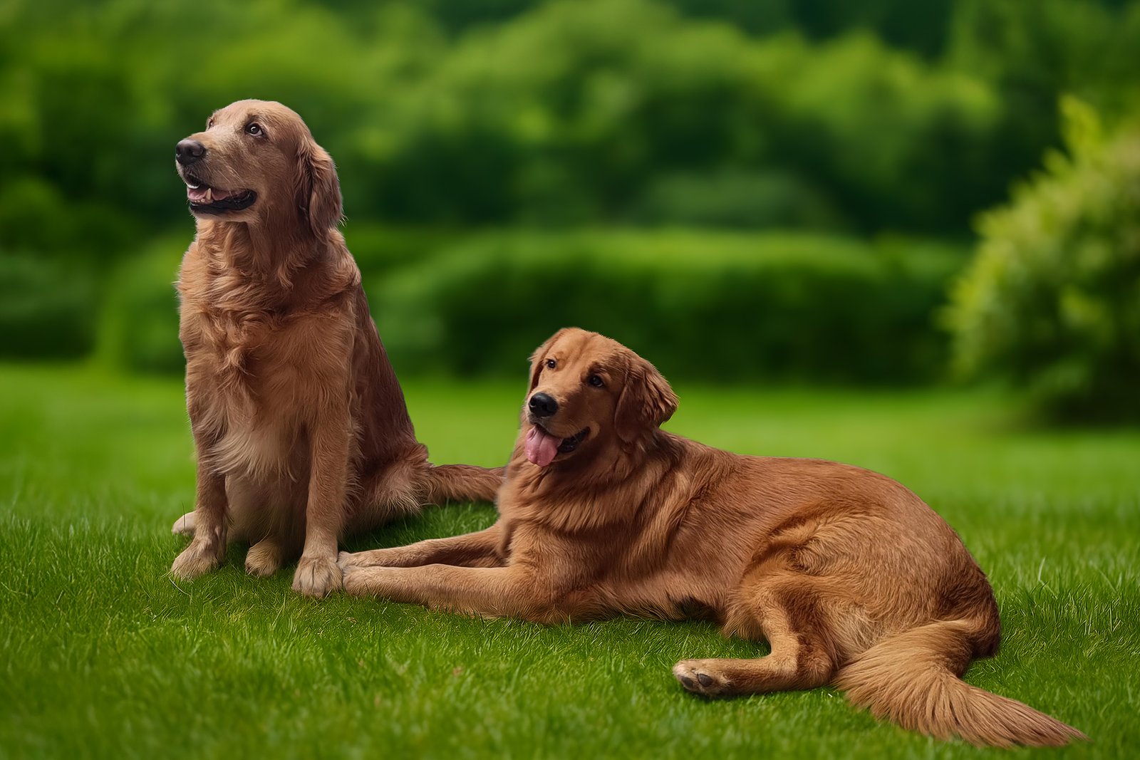 I then pasted the real dogs overtop of the AI dogs, and masked out the AI dogs… BUT, along the bottom of the dogs where they meet up with the grass, I kept just a thin line of fur, paws and the shadows in the grass. Then I color matched them to the real dogs (the AI dogs were slightly darker and more saturated in color), and then blended the fur in with the real dogs.